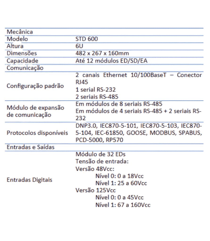 Características Técnicas STD-600